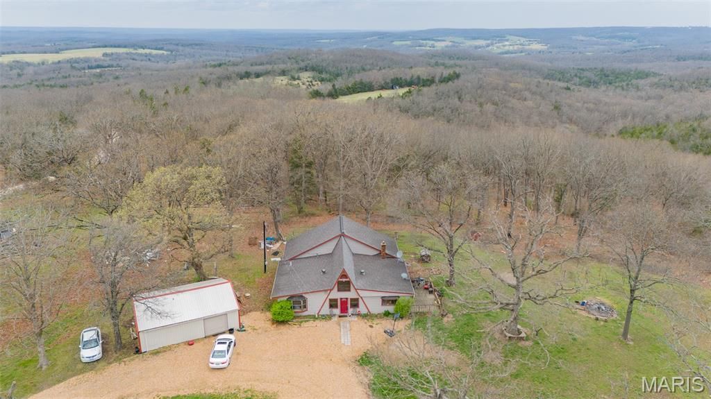 Spacious country living awaits! This 4-bedroom, 2-bathroom home offers approximately 2,581 sq ft of living space and sits on +/- 8 mostly cleared acres, complete with a fenced backyard-perfect for enjoying the outdoors. A circle gravel driveway welcomes you to the property, which also features a large deck, mature trees, established grapevines, and a storage shed that stays.Inside, you'll find vinyl plank flooring flowing throughout most of the home and a functional layout with three main-level bedrooms, plus two additional upstairs rooms offering flexibility for a potential fifth bedroom, office, or hobby space. The spacious living room features a beautiful stone wood-burning fireplace. The primary suite includes a large closet and a private bath with marble flooring. Main floor laundry adds convenience. The kitchen is equipped with an island, pantry, stainless refrigerator, and flat top stove, providing ample space for everyday living and entertaining. The home is all electric with well water and lagoon sewer, and features a 2015 addition with central heat and air, while the remainder of the home includes baseboard heat and a window unit in the living room. Roof and HVAC were replaced in 2016 for added peace of mind. A detached 768 sq ft m/l garage with updated electric (2018) offers excellent storage or workshop potential. Located in the Rolla School District, this property combines space, functionality, and rural charm-don't miss your opportunity to make it yours! Schedule your private tour of this incredible property soon!